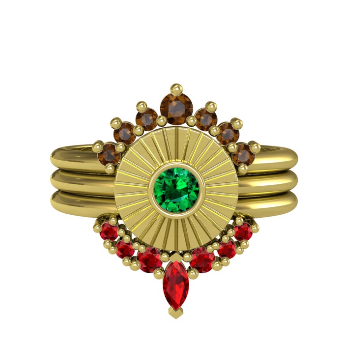Dumanlı kuvars, yeşil kuvars ve garnet 8 ayar altın yüzük