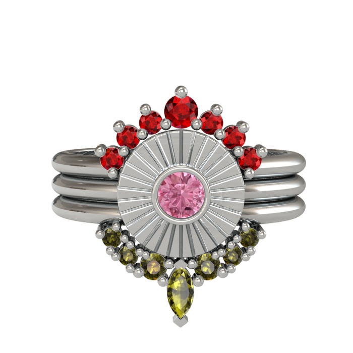 Garnet, pembe kuvars ve peridot 925 ayar gümüş yüzük