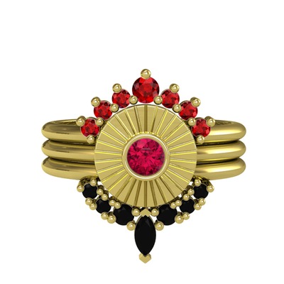 Garnet, rodolit garnet ve siyah zirkon 925 ayar altın kaplama gümüş yüzük