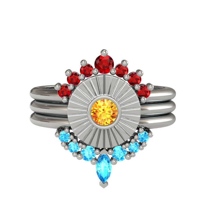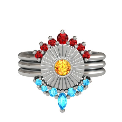 Garnet, sitrin ve akuamarin 925 ayar gümüş yüzük