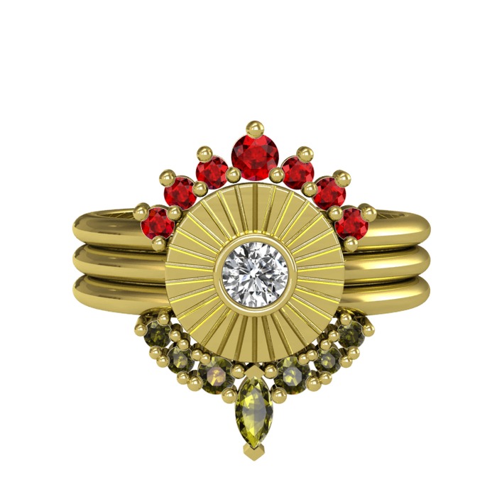 Garnet, swarovski ve peridot 8 ayar altın yüzük