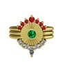 Garnet, yeşil kuvars ve beyaz zirkon 925 ayar altın kaplama gümüş yüzük