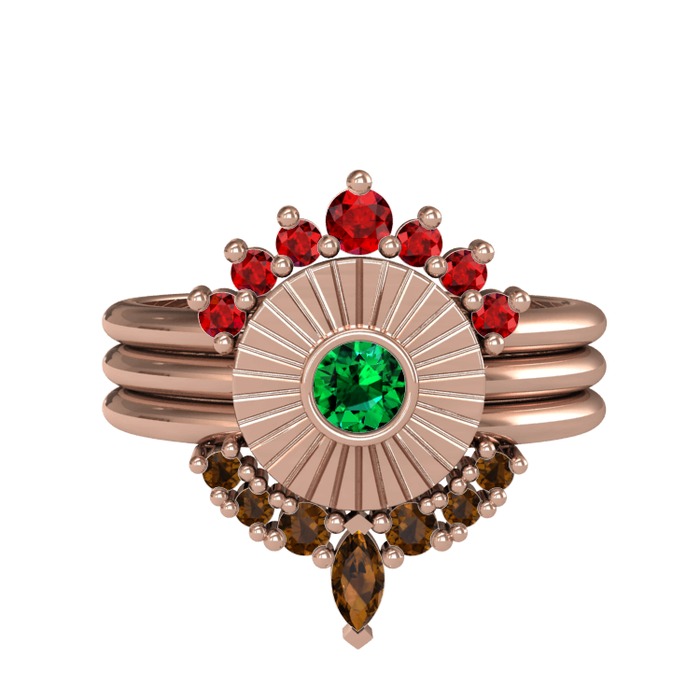 Garnet, yeşil kuvars ve dumanlı kuvars 18 ayar rose altın yüzük