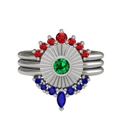Garnet, yeşil kuvars ve lab safir 8 ayar beyaz altın yüzük