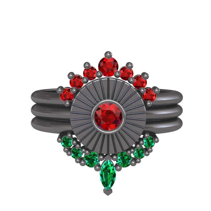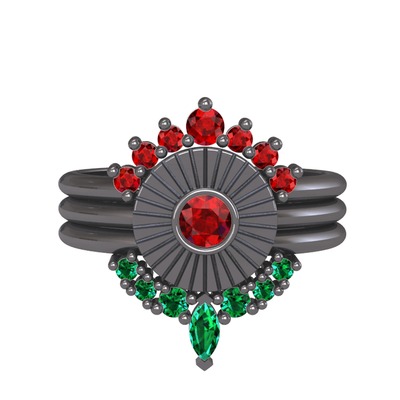 Garnet ve yeşil kuvars 925 ayar siyah rodyum kaplama gümüş yüzük