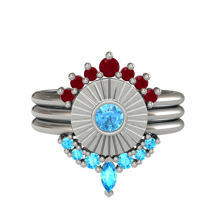 Kök yakut ve akuamarin 18 ayar beyaz altın yüzük