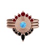 Kök yakut, akuamarin ve siyah zirkon 925 ayar rose altın kaplama gümüş yüzük