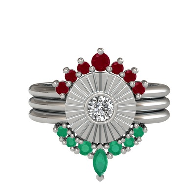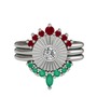 Kök yakut, beyaz zirkon ve kök zümrüt 8 ayar beyaz altın yüzük