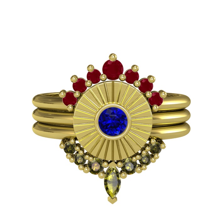 Kök yakut, lab safir ve peridot 18 ayar altın yüzük