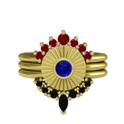 Kök yakut, lab safir ve siyah zirkon 925 ayar altın kaplama gümüş yüzük