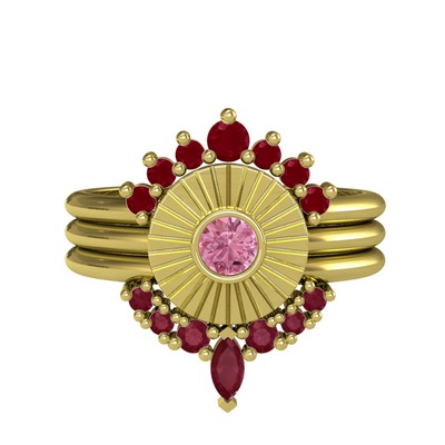 Kök yakut ve pembe kuvars 925 ayar altın kaplama gümüş yüzük
