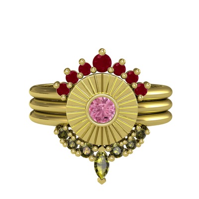 Kök yakut, pembe kuvars ve peridot 18 ayar altın yüzük