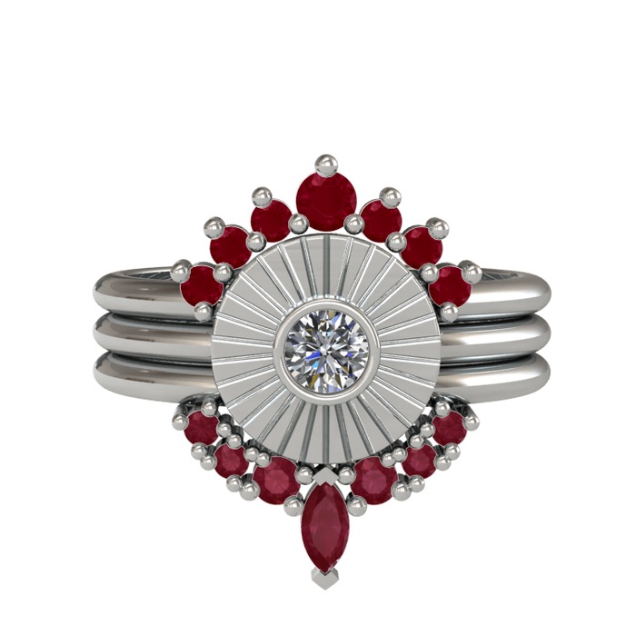 Kök yakut ve pırlanta 14 ayar beyaz altın yüzük (0.16 karat)