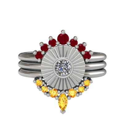 Kök yakut, pırlanta ve sitrin 8 ayar beyaz altın yüzük (0.16 karat)