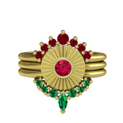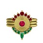 Kök yakut, rodolit garnet ve yeşil kuvars 18 ayar altın yüzük