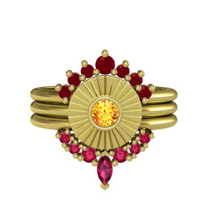 Kök yakut, sitrin ve rodolit garnet 14 ayar altın yüzük