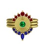 Kök yakut, yeşil kuvars ve lab safir 14 ayar altın yüzük