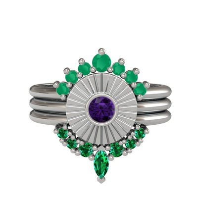 Kök zümrüt, ametist ve yeşil kuvars 925 ayar gümüş yüzük