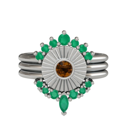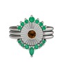 Kök zümrüt ve dumanlı kuvars 18 ayar beyaz altın yüzük
