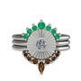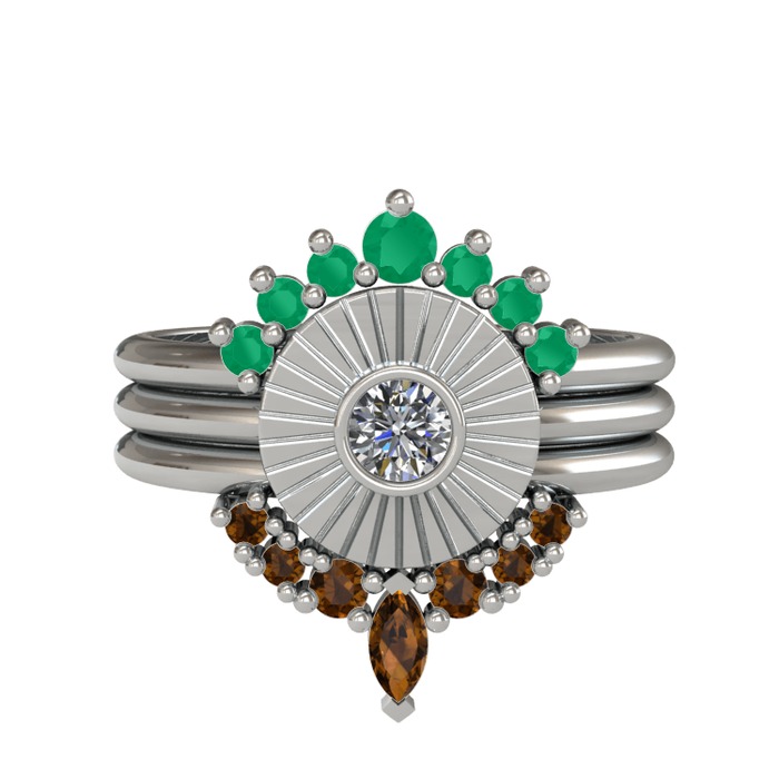 Kök zümrüt, pırlanta ve dumanlı kuvars 8 ayar beyaz altın yüzük (0.16 karat)
