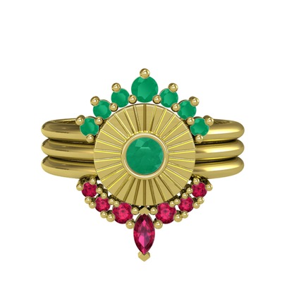 Kök zümrüt ve rodolit garnet 925 ayar altın kaplama gümüş yüzük