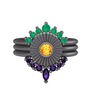 Kök zümrüt, sitrin ve ametist 925 ayar siyah rodyum kaplama gümüş yüzük
