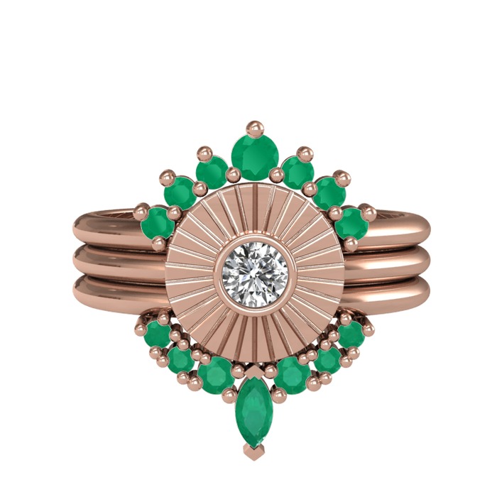 Kök zümrüt ve swarovski 8 ayar rose altın yüzük