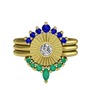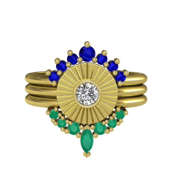 Lab safir, beyaz zirkon ve kök zümrüt 14 ayar altın yüzük