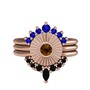 Lab safir, dumanlı kuvars ve siyah zirkon 14 ayar rose altın yüzük