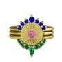 Lab safir, pembe kuvars ve yeşil kuvars 18 ayar altın yüzük