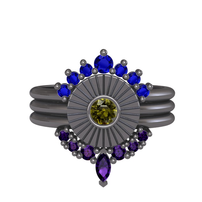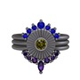 Lab safir, peridot ve ametist 925 ayar siyah rodyum kaplama gümüş yüzük