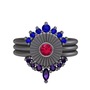 Lab safir, rodolit garnet ve ametist 925 ayar siyah rodyum kaplama gümüş yüzük