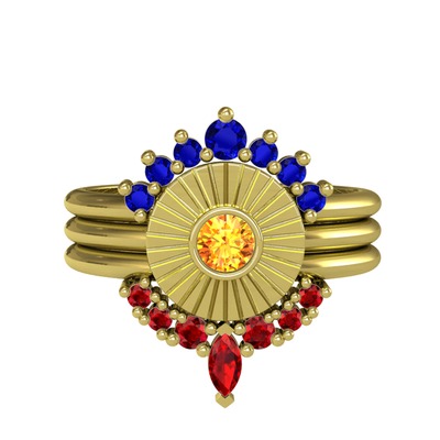 Lab safir, sitrin ve garnet 8 ayar altın yüzük