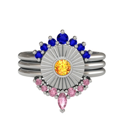 Lab safir, sitrin ve pembe kuvars 8 ayar beyaz altın yüzük
