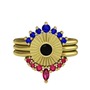 Lab safir, siyah zirkon ve rodolit garnet 14 ayar altın yüzük