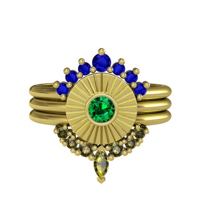 Lab safir, yeşil kuvars ve peridot 18 ayar altın yüzük