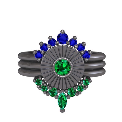 Lab safir ve yeşil kuvars 925 ayar siyah rodyum kaplama gümüş yüzük