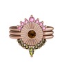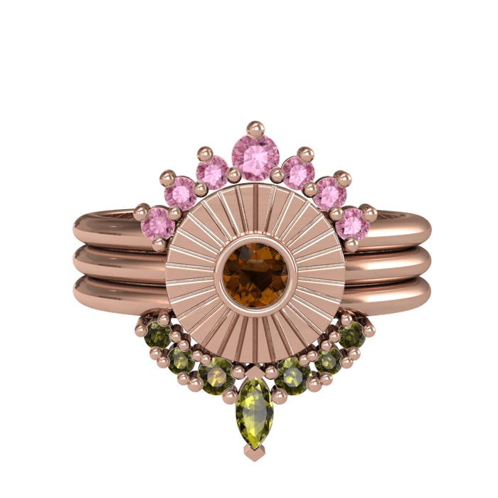 Pembe kuvars, dumanlı kuvars ve peridot 14 ayar rose altın yüzük