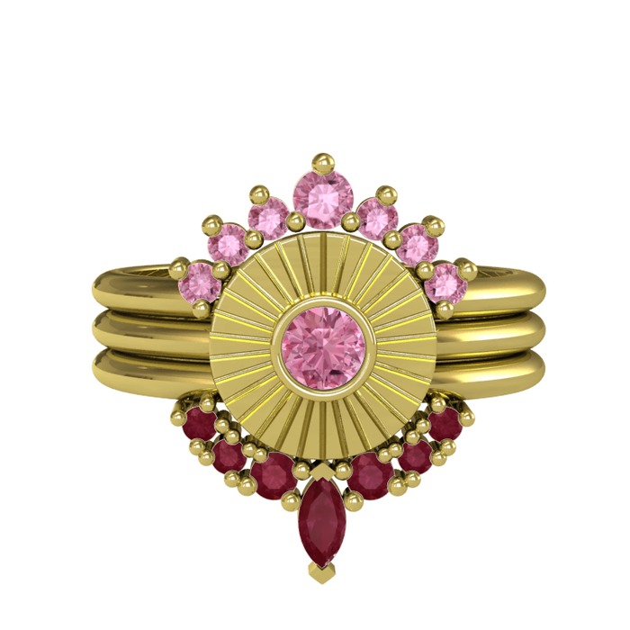 Pembe kuvars ve kök yakut 925 ayar altın kaplama gümüş yüzük