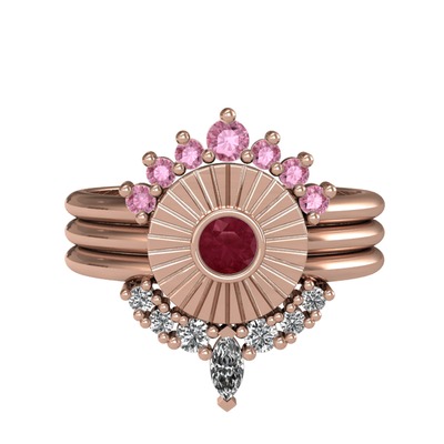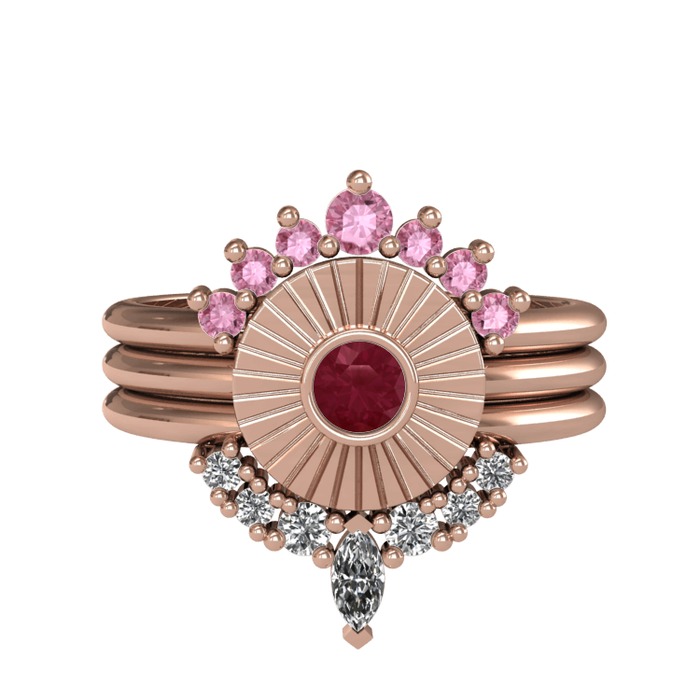 Pembe kuvars, kök yakut ve swarovski 18 ayar rose altın yüzük