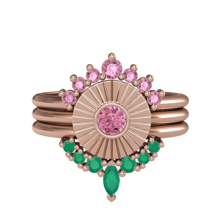 Pembe kuvars ve kök zümrüt 925 ayar rose altın kaplama gümüş yüzük