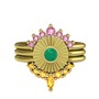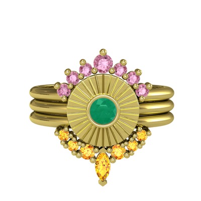 Pembe kuvars, kök zümrüt ve sitrin 14 ayar altın yüzük
