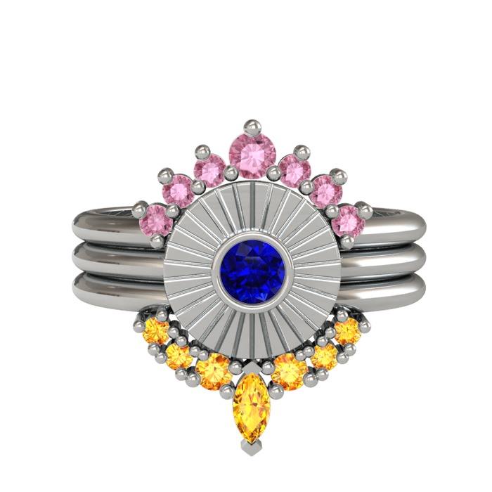 Pembe kuvars, lab safir ve sitrin 18 ayar beyaz altın yüzük