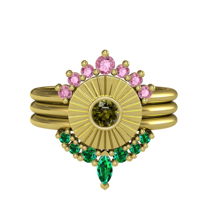 Pembe kuvars, peridot ve yeşil kuvars 18 ayar altın yüzük
