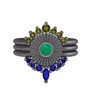 Peridot, kök zümrüt ve lab safir 925 ayar siyah rodyum kaplama gümüş yüzük