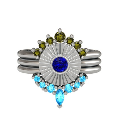 Peridot, lab safir ve akuamarin 925 ayar gümüş yüzük
