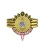 Peridot, pırlanta ve pembe kuvars 18 ayar altın yüzük (0.16 karat)