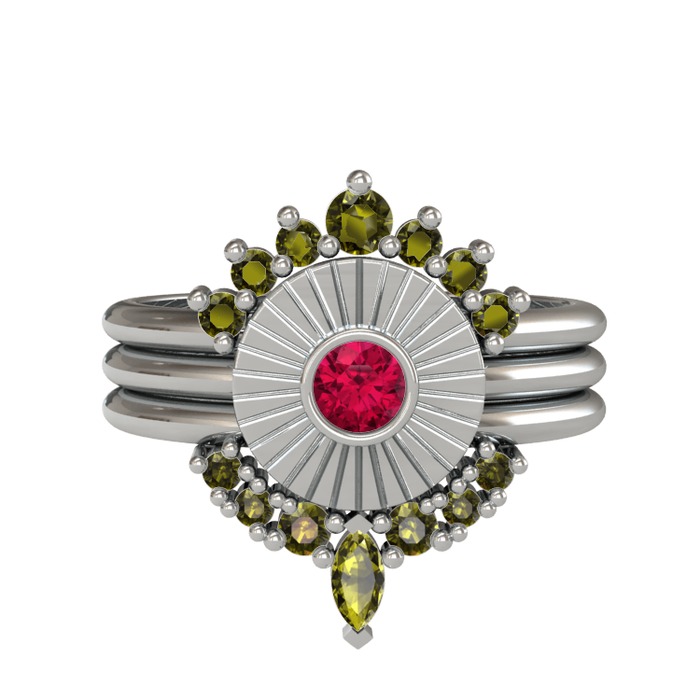 Peridot ve rodolit garnet 18 ayar beyaz altın yüzük