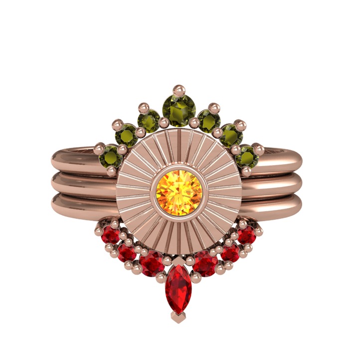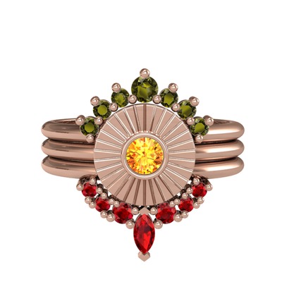 Peridot, sitrin ve garnet 925 ayar rose altın kaplama gümüş yüzük