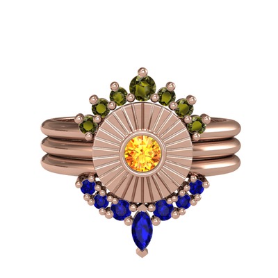 Peridot, sitrin ve lab safir 8 ayar rose altın yüzük